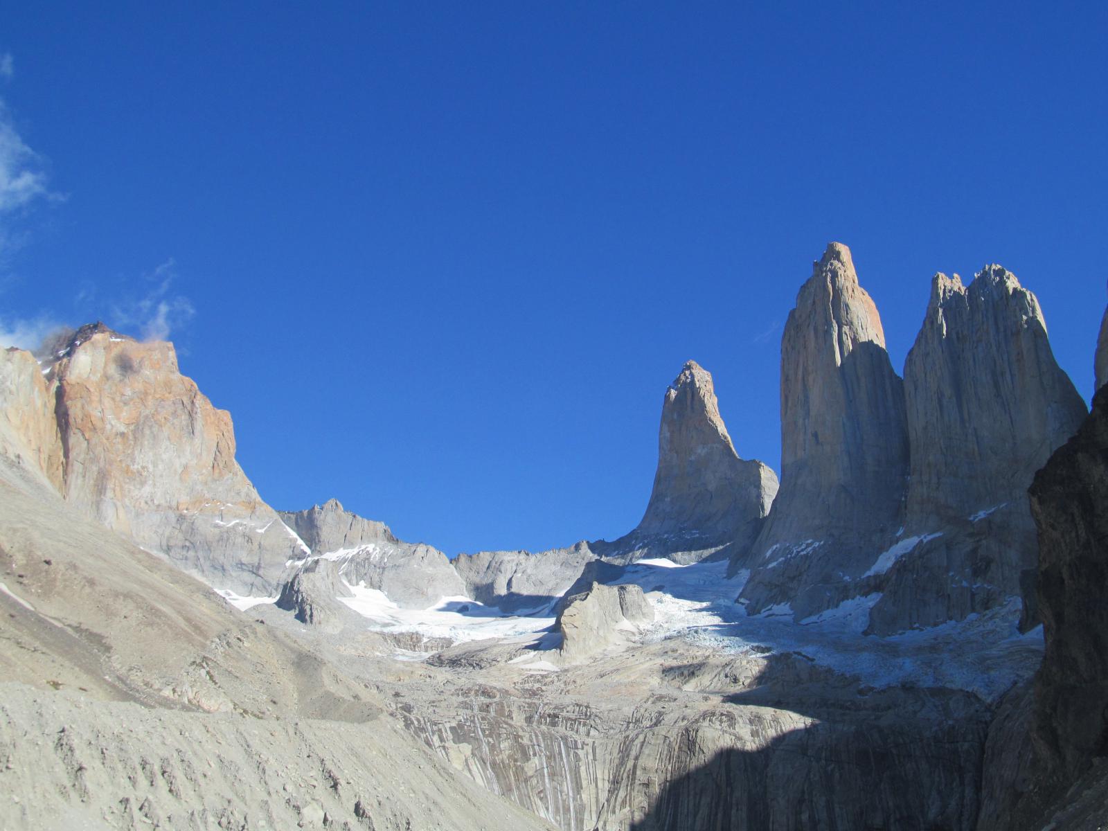 Heute geht es auf einer antrengenden Wanderung bis an den Fuss der Paine-Türme, den Torres. Die erste Strecke besteht aus einer Stunde Anstieg bis zum Tal des Fluss Asencio, mit herrlicher Sicht auf die Seen der Umgebung; im nachfolgenden eine weitere einstündige Wanderung durch einen Lengawald und man erreicht den Aussichtspunkt der Granitsäulen: die Türme des Paine Massivs.