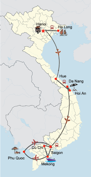 Erleben Sie während dieser zweiwöchigen Rundreise alle Höhepunkte Vietnams von Nord nach Süd. Eine Kreuzfahrt durch die Halongbucht, die besondere Atmosphäre im Schein bunter Lampions in Hoi An, das pulsierende Nachtleben in Saigon und die Naturschönheit des Südens sind nur einige der Stationen, die Sie besuchen werden. Anschließend verbringen Sie 4 Nächte auf der dschungelbewachsenen Tropeninsel Phu Quoc.
