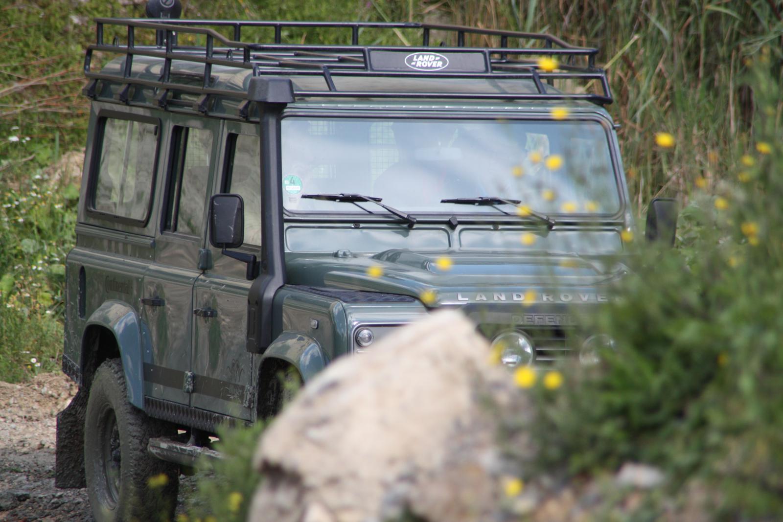 Zur Einführung in das Offroadfahren über Wald- und Wiesenwege wird die erste Etappe von einem Begleitfahrzeug angeführt.
