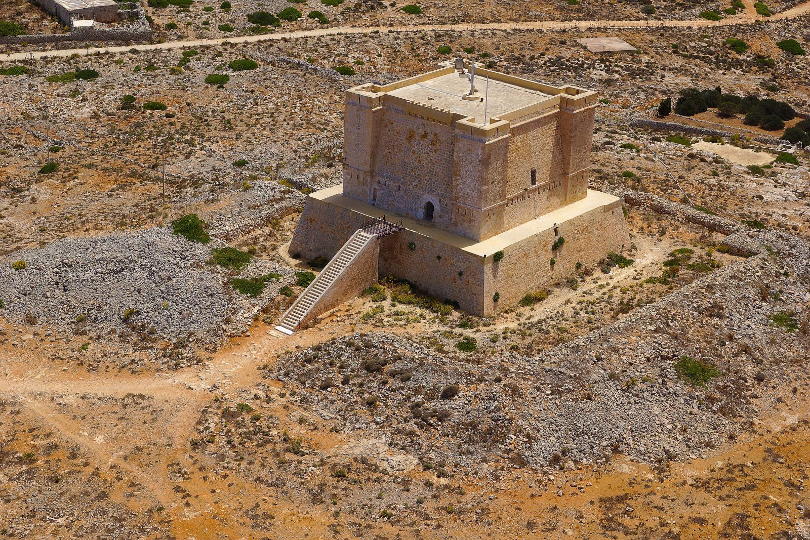 Der bekannte Santa Maria-Turm auf Comino hat bis zu 6 Meter dicke Turmmauern. Er ist Teil eines ganzen Turmsystems, das der Orden hat einrichten lassen, um die Verteidigung und Kommunikation zwischen der Zitadelle in Gozo und Mdina zu erleichtern.